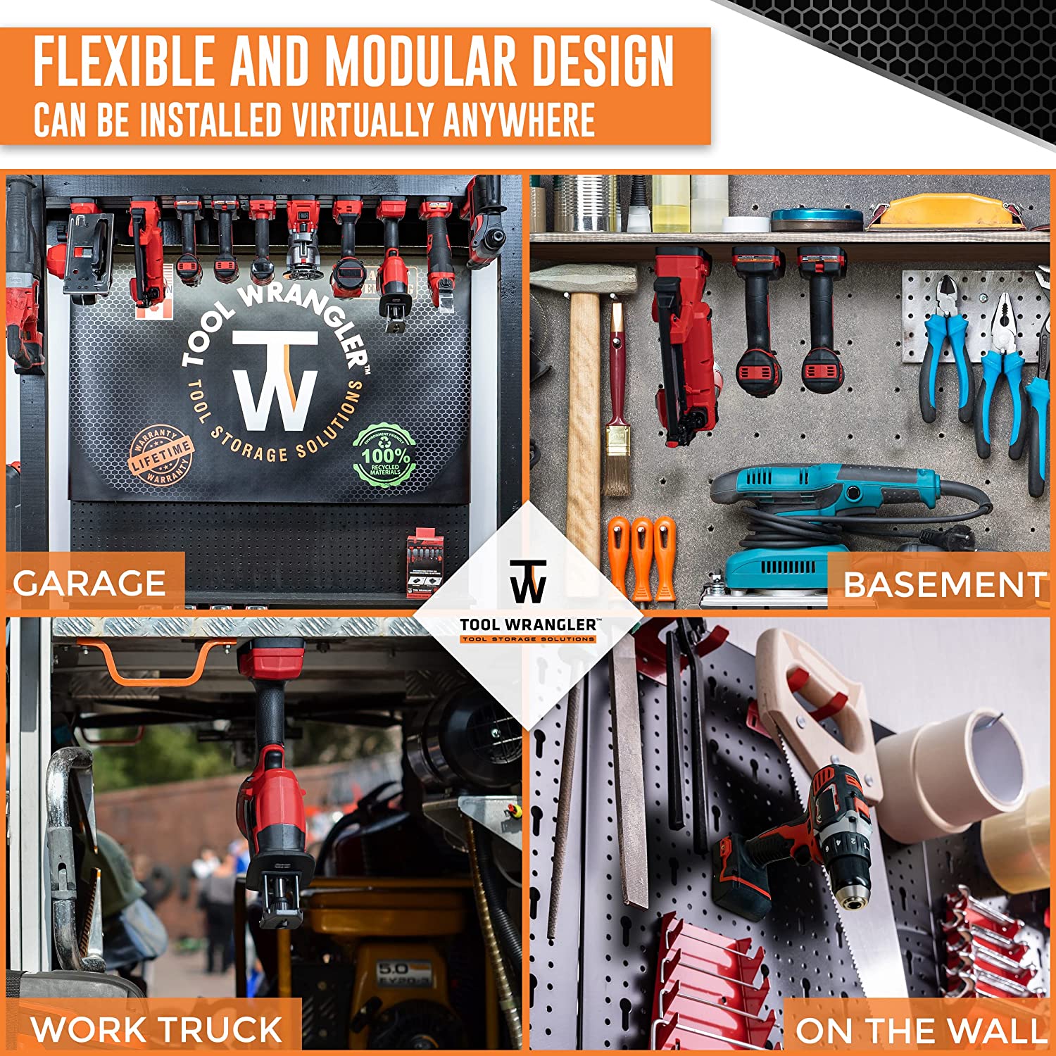 - WHAT YOU GET - This 8 pack combo comes with 8 Black Tool Holders, mounting hardware (Screws Included) and instructions.