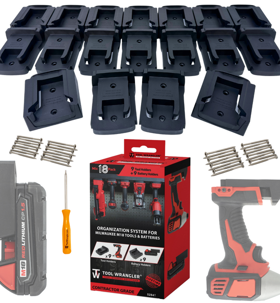 18 Pack Combo (9+9) - BLACK - Includes: 9 Tool Holders & 9 Battery Holders